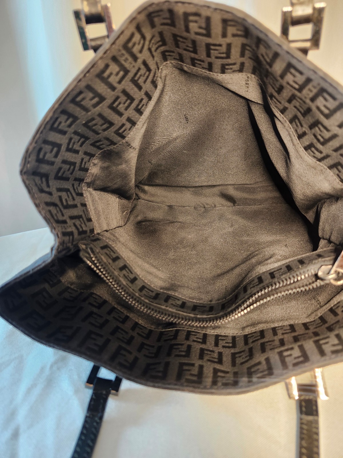 A timeless logomania piece from Fendi that blends functional tote styling with vintage luxury appeal. Ideal for daily carry or as a stylish travel companion.